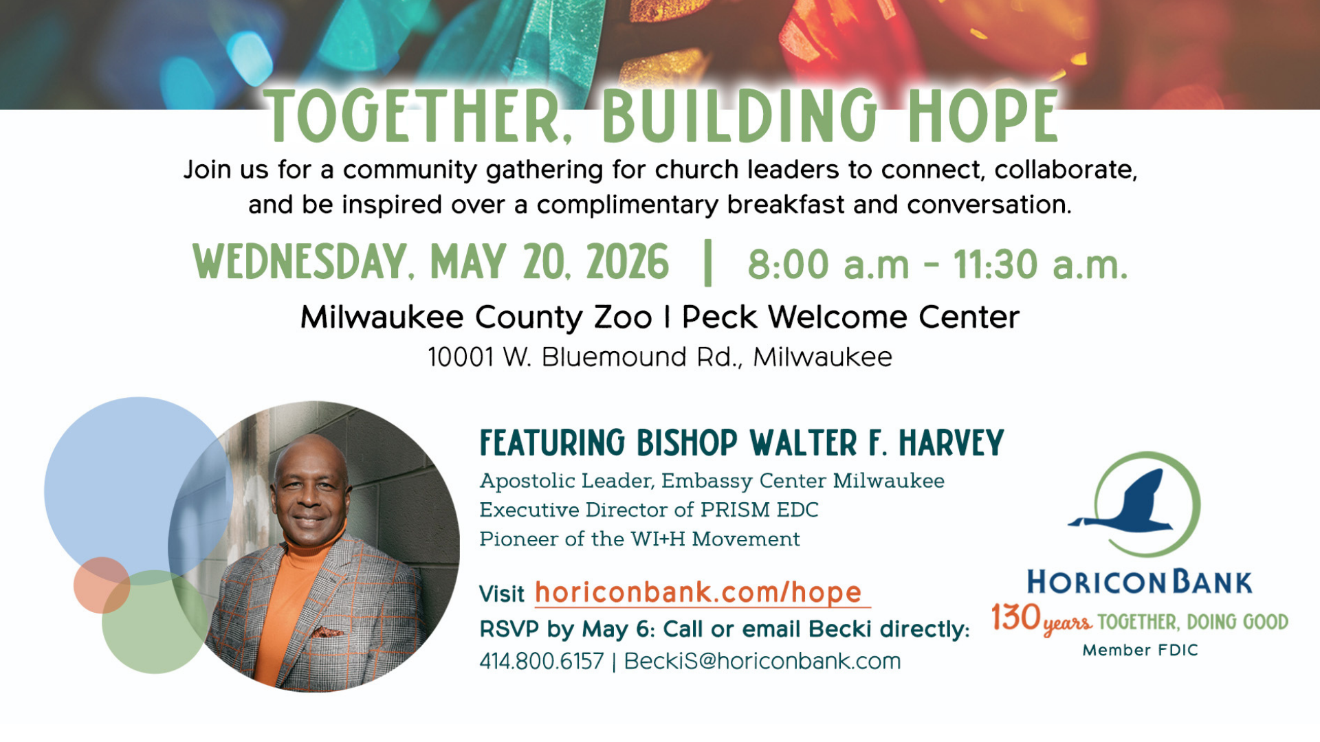 RSVP by May 6: Call or email 414.800.6157 or BeckiS@horiconbank.com